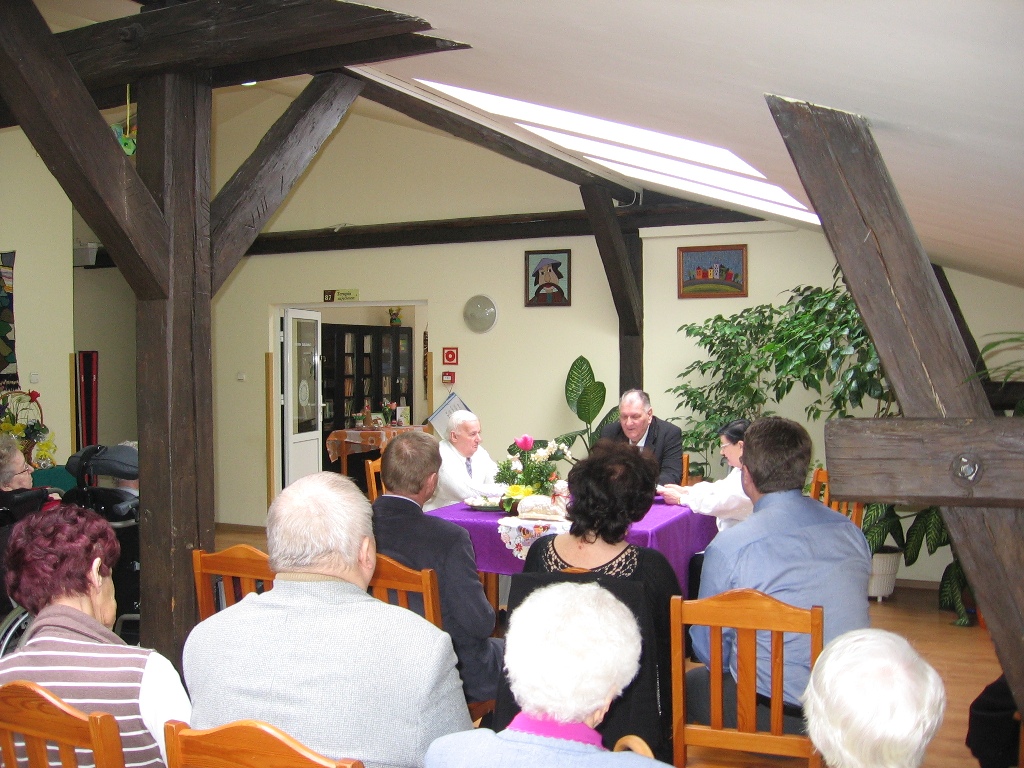 Tegoroczne spotkanie odbyło się w czwartek 24 marca. Swoją obecnością tradycyjnie zaszczycili nas: Pani Waleria Dąbrowska i Pan Edward Mazur, przychodząc ze specjalnie przygotowanymi przez siebie przesłaniami i świątecznymi życzeniami. Dyrektor Mariusz Półchłopek złożył osobiste życzenia mieszkańcom i personelowi, a także przekazał wszystkim życzenia od Starosty Prudnickiego Pana Radosława Roszkowskiego. Dyrektor w imieniu mieszkańców podziękował pracownikom za opiekę i życzliwość jaką na co dzień okazują podopiecznym naszej placówki.