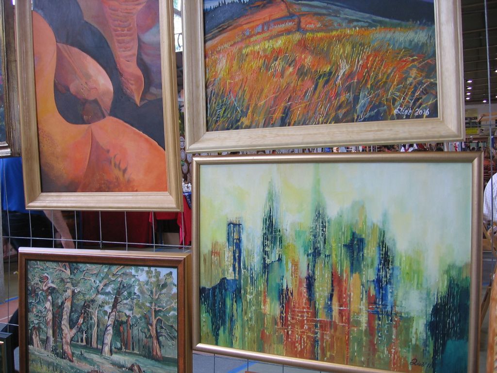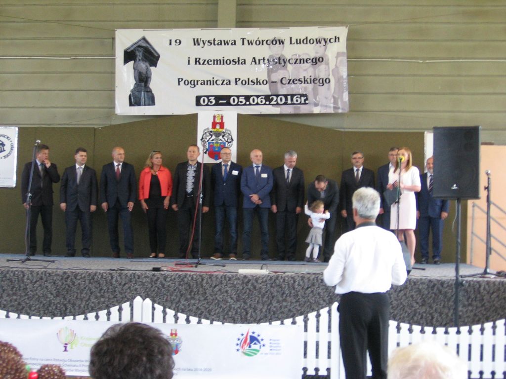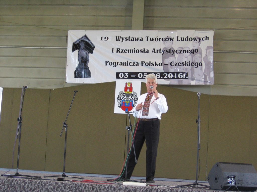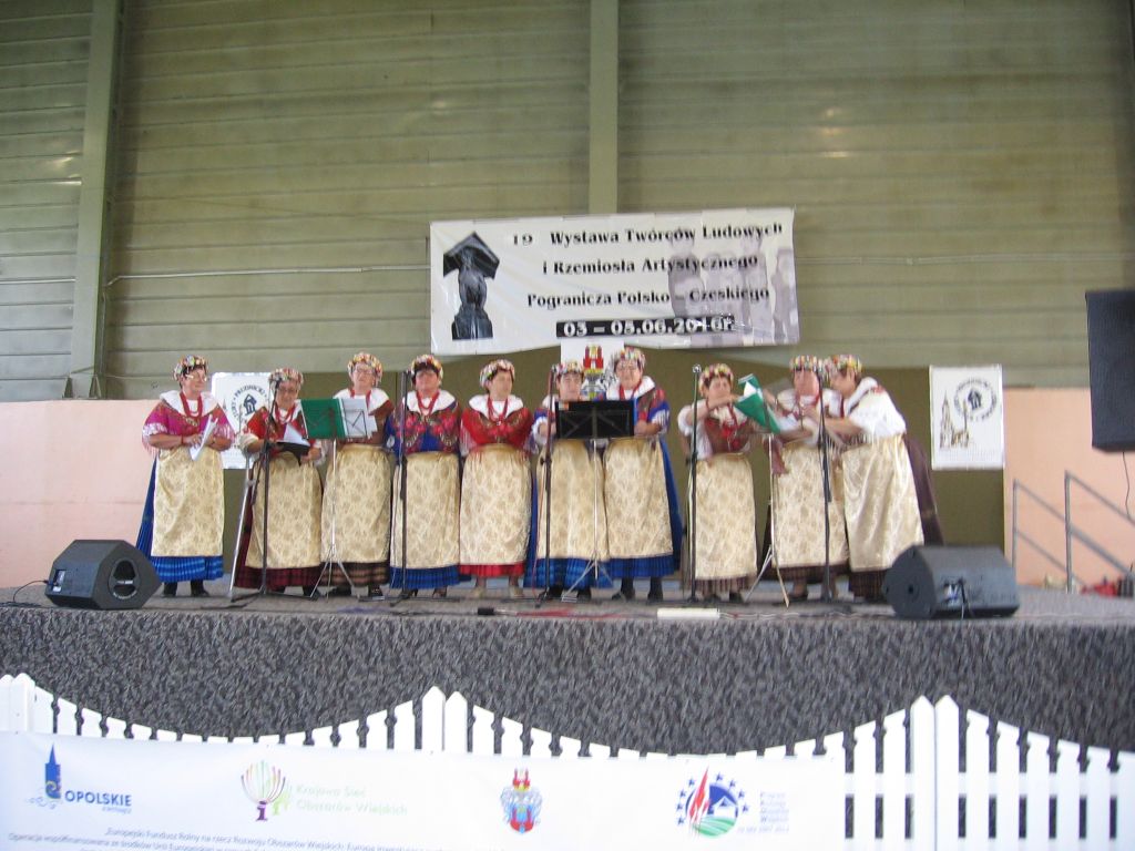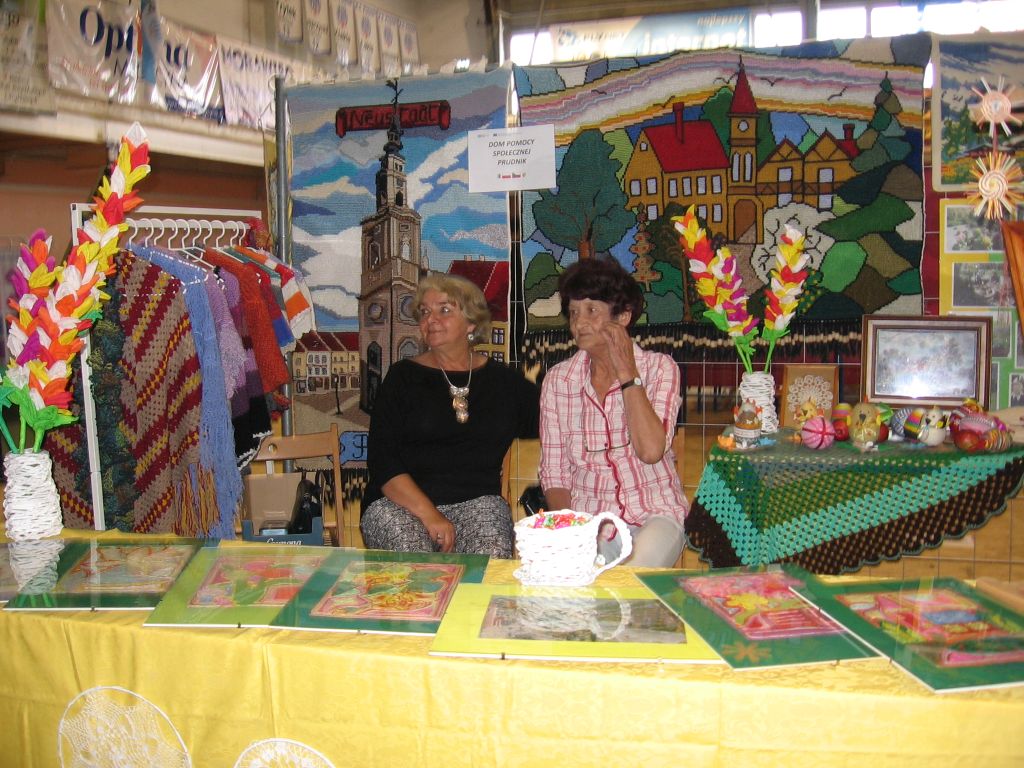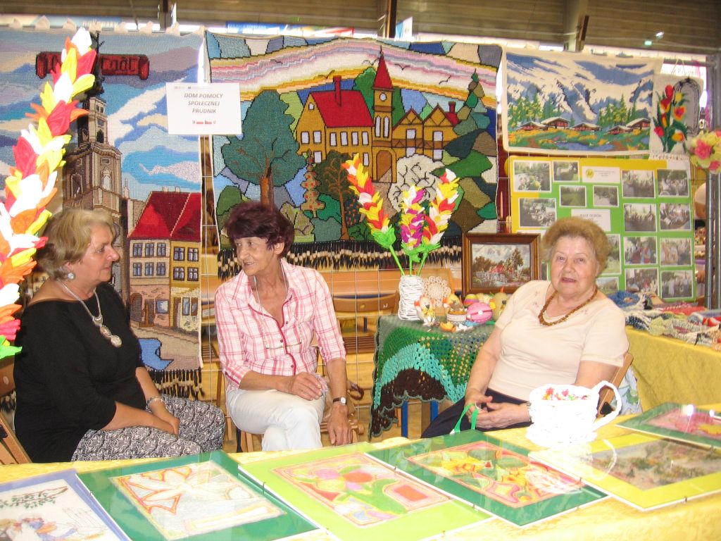 Pokazaliśmy między innymi prace dziewiarskie wykonane przez panie z sekcji „Pętelka”, tj: torebki, chusty, sweterki dla dzieci i szaliki . Były również ozdoby do okien wykonane na szydełku, obrazki haftowane haftem krzyżykowym oraz dwa duże gobeliny z widokiem Prudnika. Oprócz tych dzieł zaprezentowaliśmy tabla naszej placówki. Wyroby z naszej ekspozycji cieszyły się dużym zainteresowaniem zwiedzających Wystawę. Z niecierpliwością czekamy do następnego roku na Jubiluszową- 20 edycję tego przedsięwzięcia organizowanego w naszym polsko-czeskim regionie.