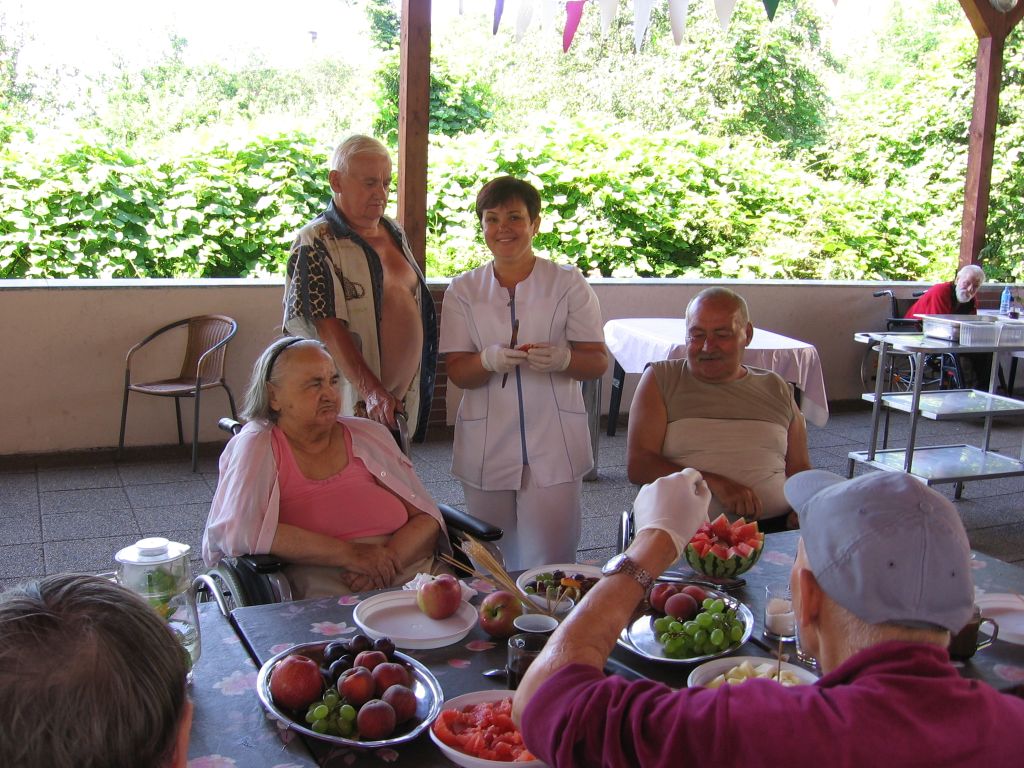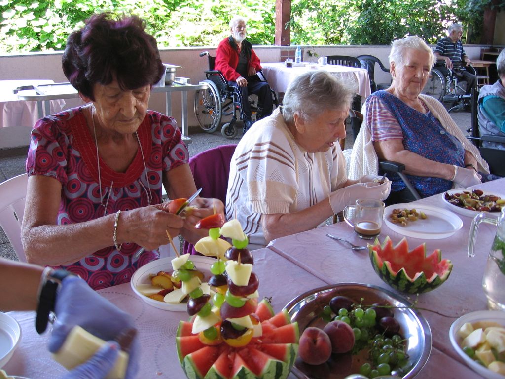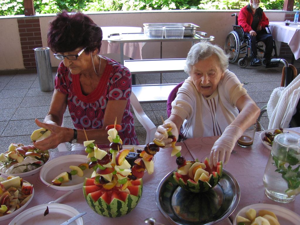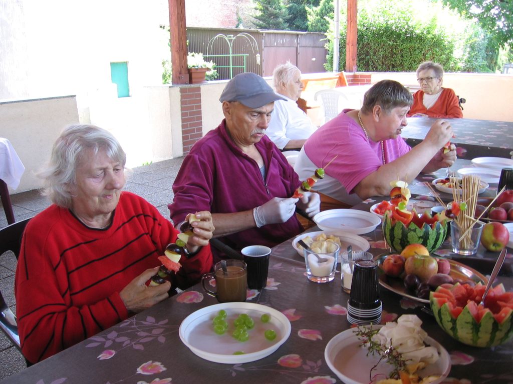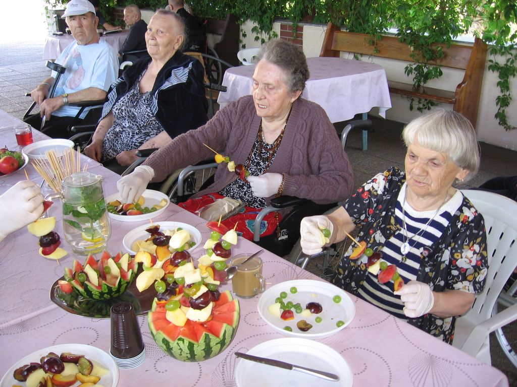 Dzisiaj we wiacie ogrodowej odbyły się ?Wielkie owocowe zawody w robieniu szaszłyków?. Rywalizowały między sobą dwie drużyny mieszkańców pod przewodnictwem Małgosi i Agaty.