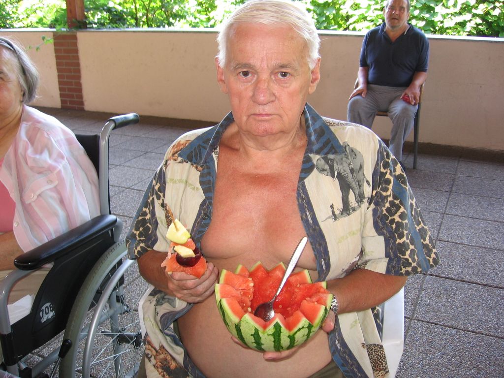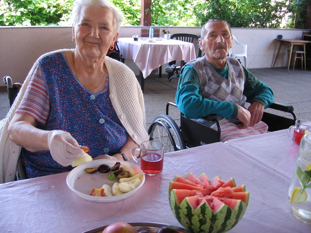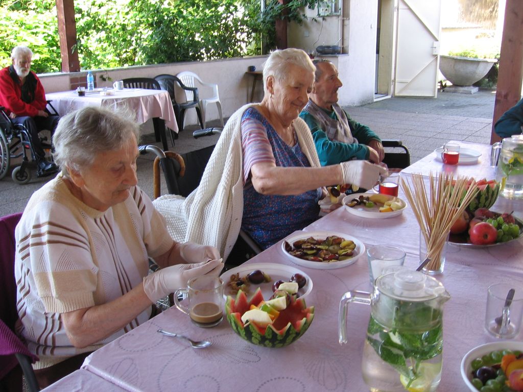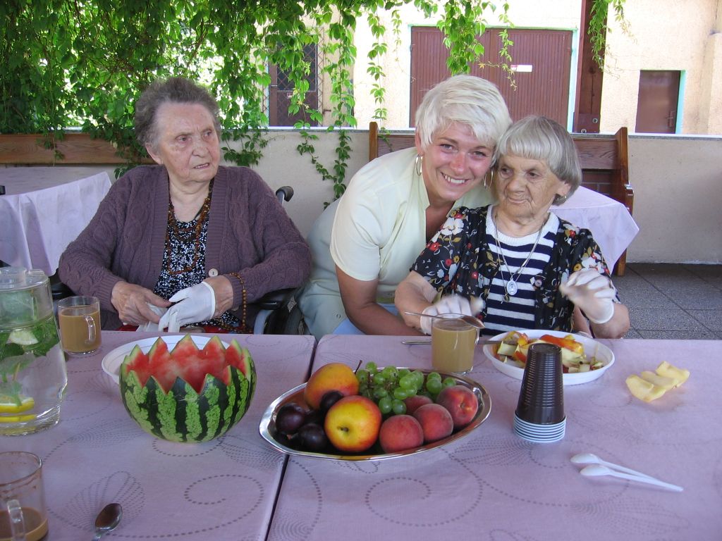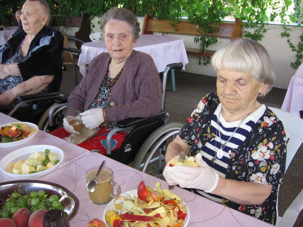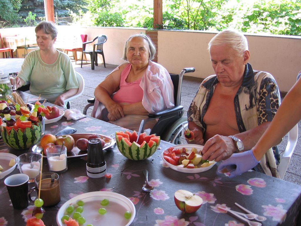 Dzisiaj we wiacie ogrodowej odbyły się ?Wielkie owocowe zawody w robieniu szaszłyków?. Rywalizowały między sobą dwie drużyny mieszkańców pod przewodnictwem Małgosi i Agaty.