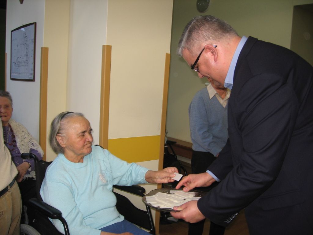 W pięknym świątecznym klimacie Pan Dyrektor Tomasz Szurmak powitał serdecznie wszystkich gości, pracowników i licznie przybyłych mieszkańców. Pokrótce przedstawił sytuację domu i złożył świąteczne życzenia. Do życzeń dołączyła się Pani Krystyna Wilisowska - Dyrektor PCPR w Prudniku, która oprócz ciepłych życzeń podziękowała również za zaproszenie.