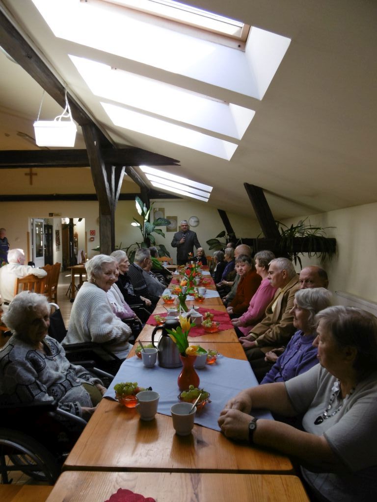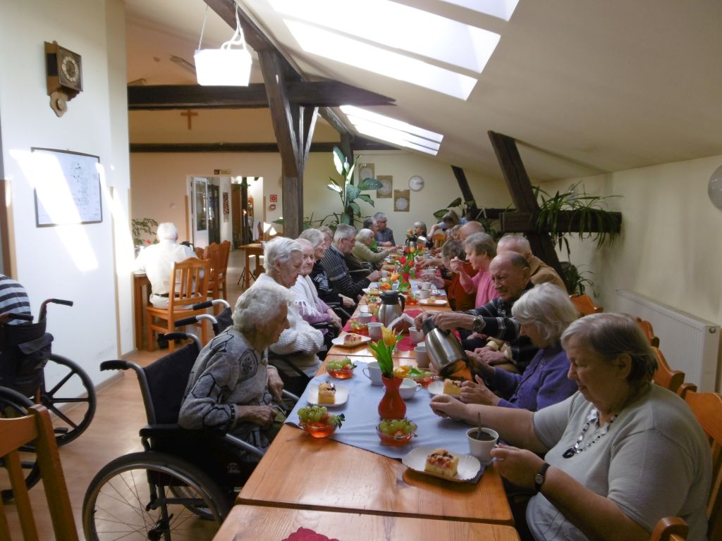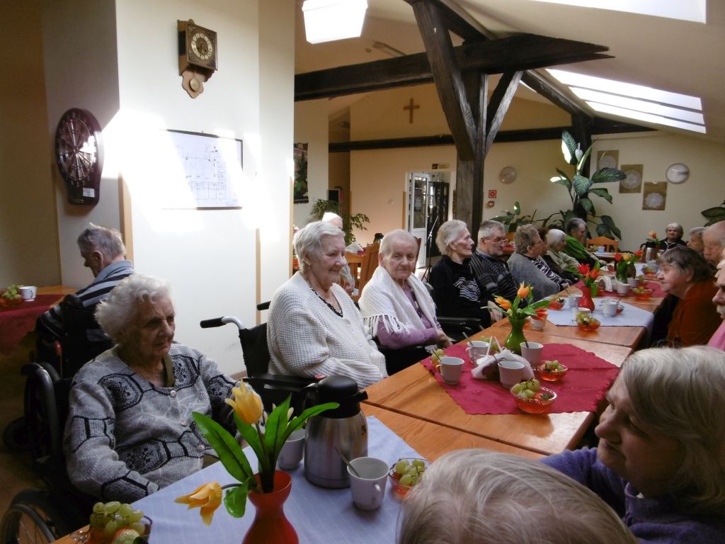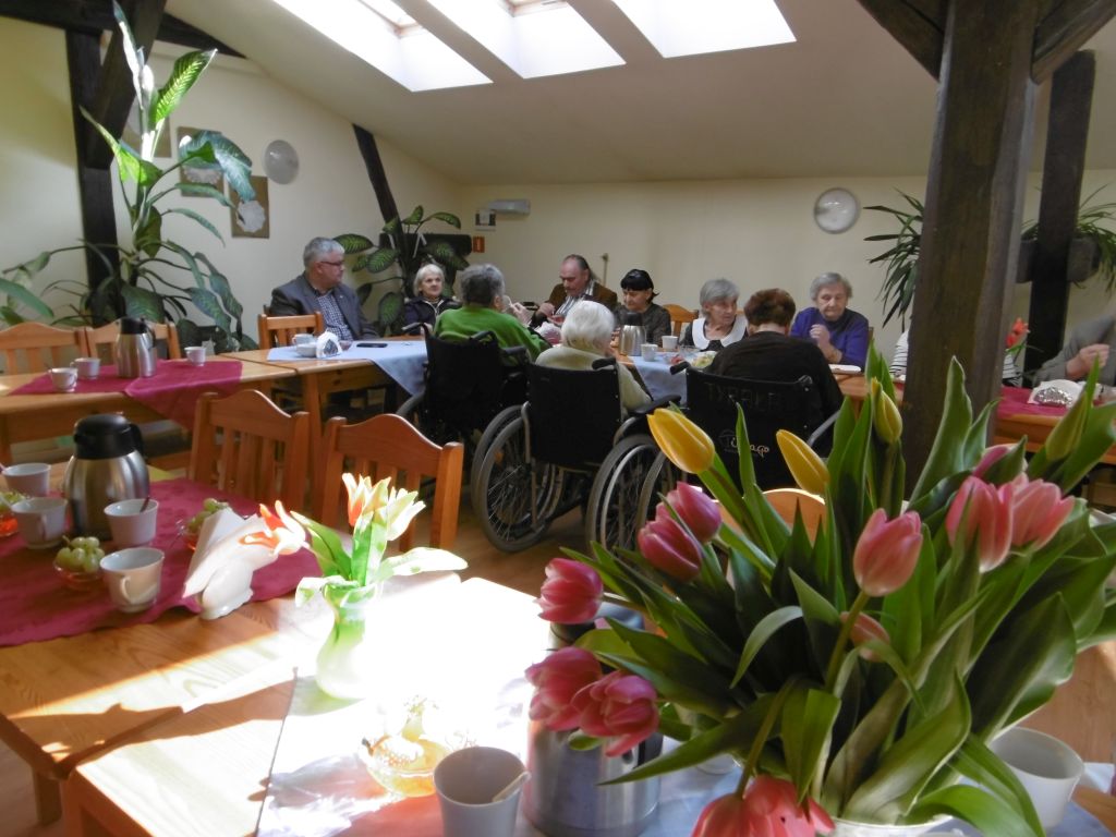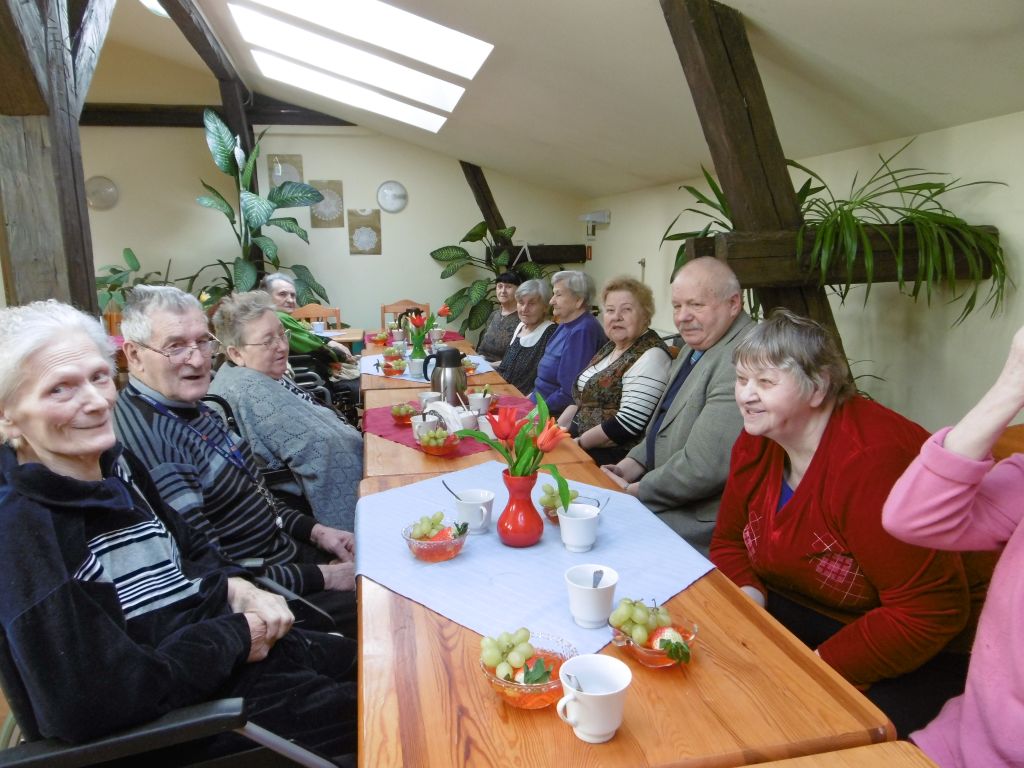 Z okazji Dnia Kobiet w naszym Domu zorganizowaliśmy spotkanie dla wszystkich Pań. W odświętnej atmosferze, słuchając szlagierów z lat 60-tych, 70-tych i 80-tych mieszkanki spędziły miło czas przy słodkim poczęstunku.