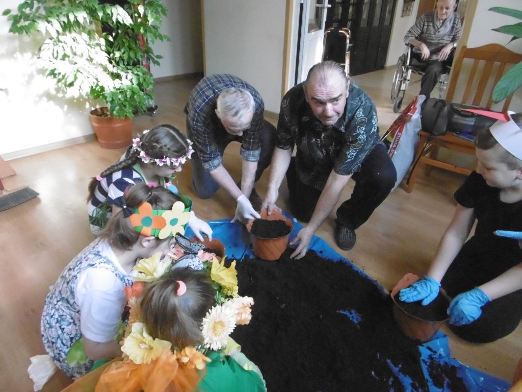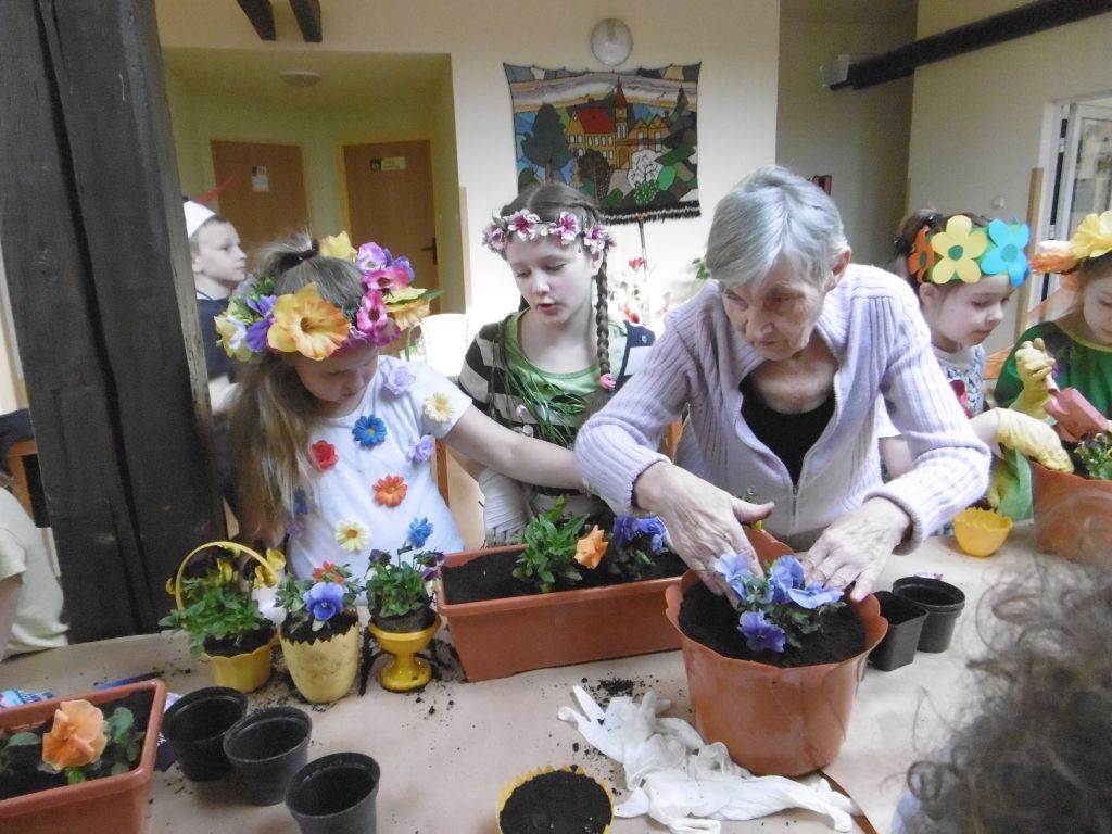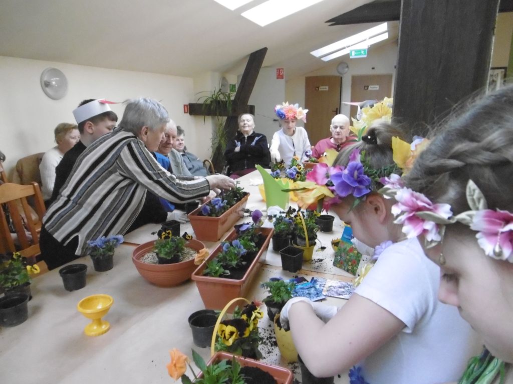Następnie z zapałem zabraliśmy się razem do sadzenia bratków i siania wiosennych kwiatków, które będą ozdobą w naszej ogrodowej wiacie. Wizyta dzieci bardzo nas uradowała i teraz już na pewno wiemy, że przyszła wiosna. W załączeniu bardzo obszerna galeria zdjęć.