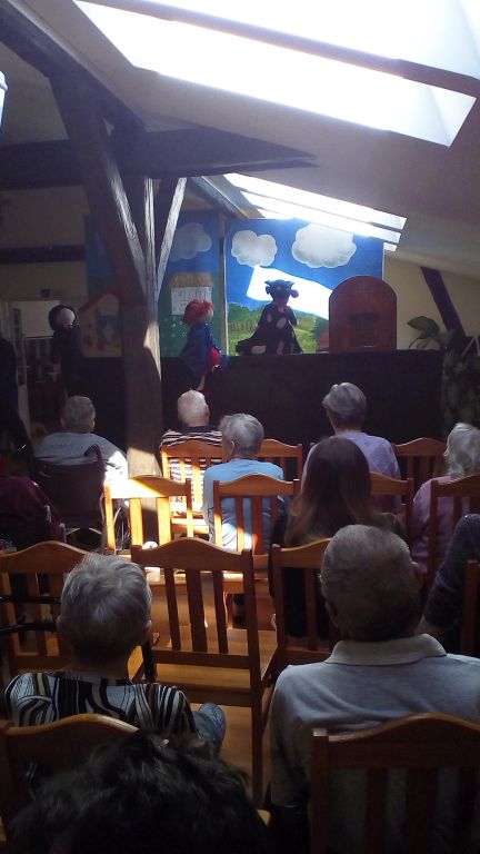 Dnia 31.03.2017r do naszego domu zawitali artyści teatru kukiełkowego „Tomcio” z Nowego Sącza, którzy przedstawili nam spektakl „Krowa kłamczucha”. Sztuka w zabawnej formie opowiadała o niesfornej krowie, która okłamywała swoich bliskich.