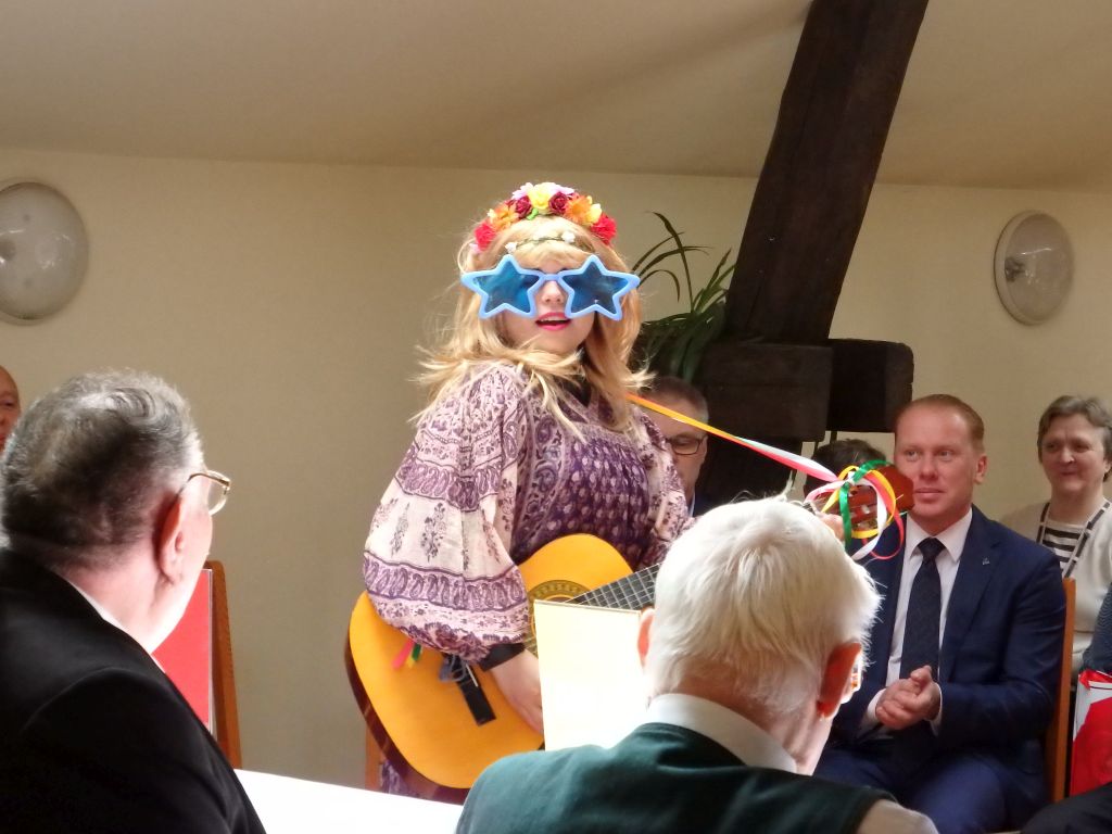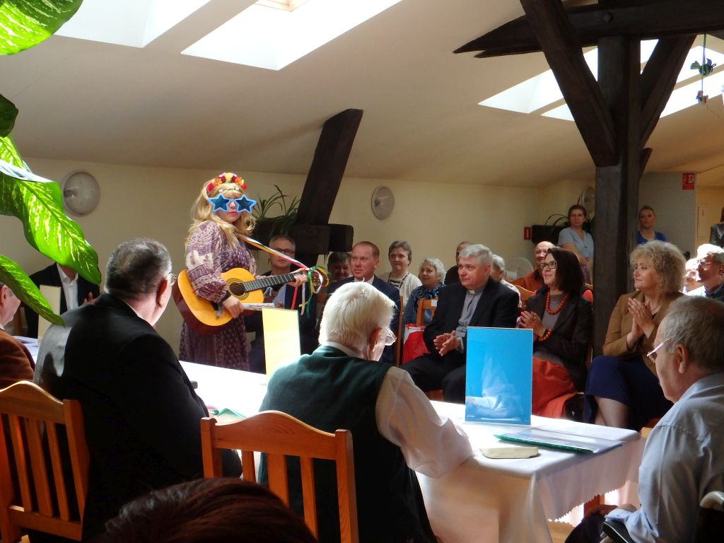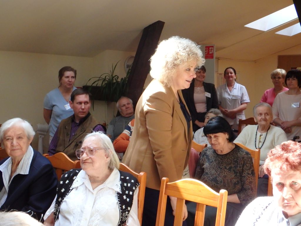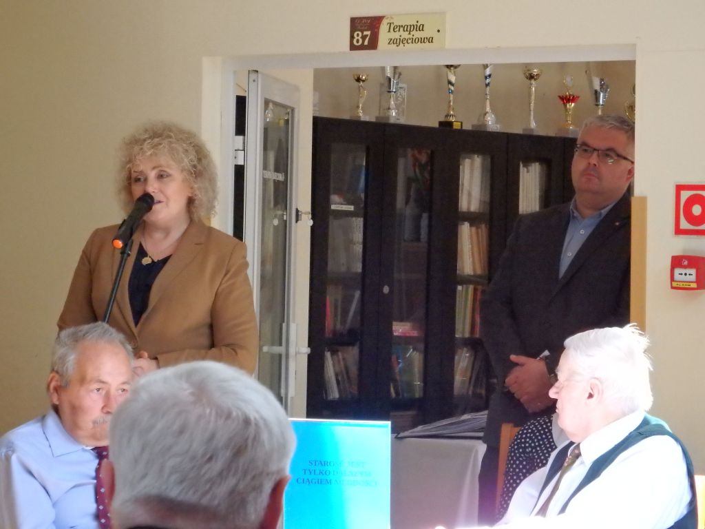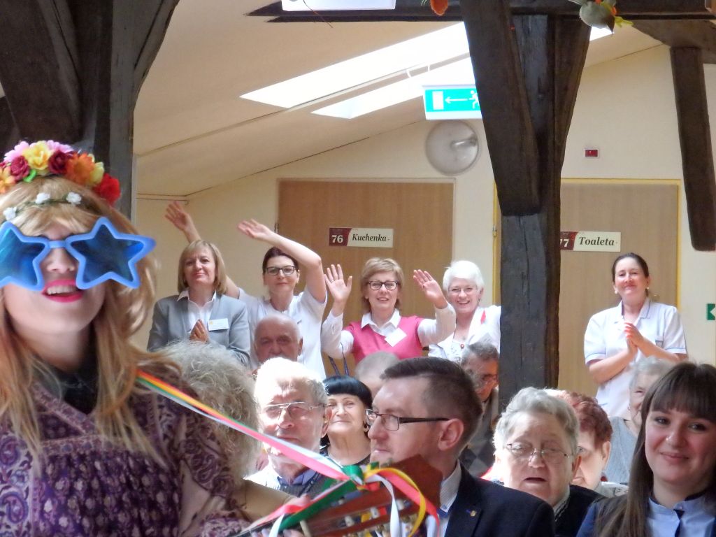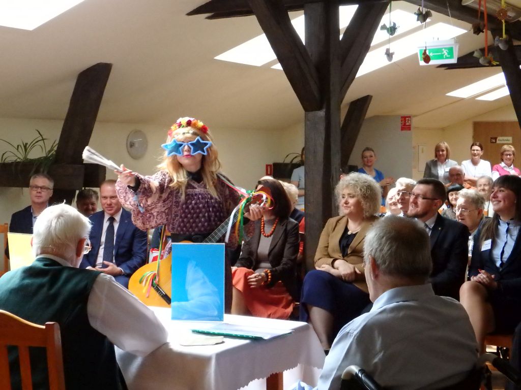 Po części oficjalnej, przywitaniu i słowie wstępnym zaproszeni goście wspólnie obejrzeli program artystyczny przygotowany przez naszych mieszkańców pt: „Oda do starości”. Przerywnikiem programu była parodia piosenki „Ech Mała”. W rolę Maryli Rodowicz wcieliła się Ewelina Feret- pracownik socjalny, czym bardzo rozbawiła wszystkich gości i naszych mieszkańców.