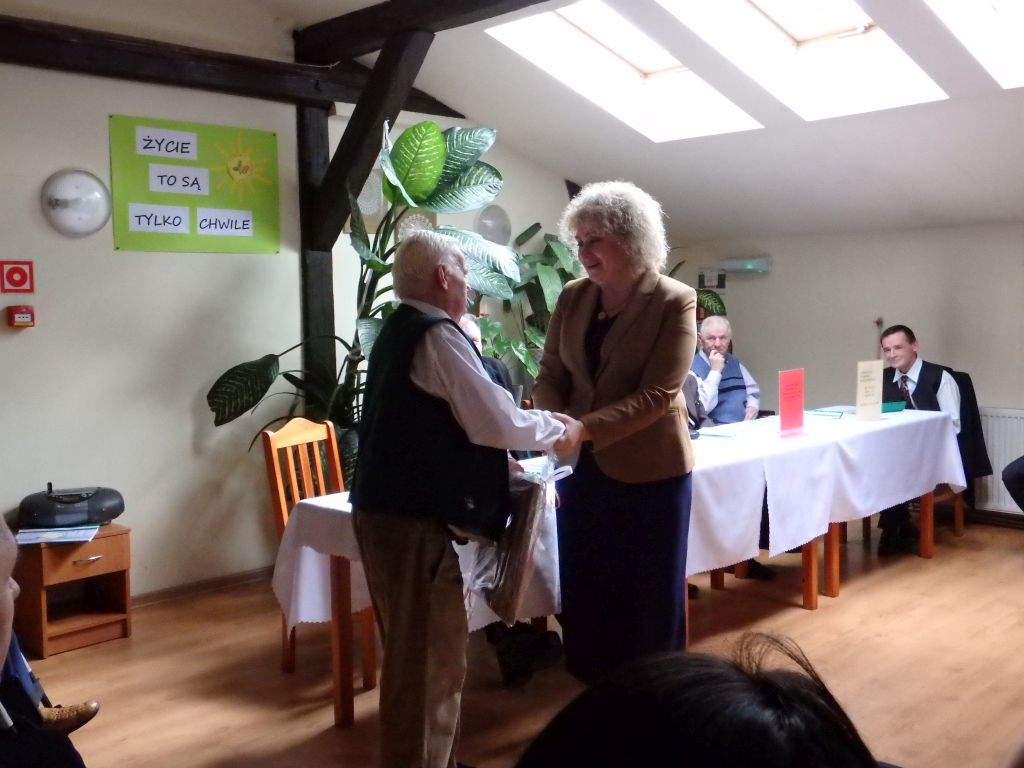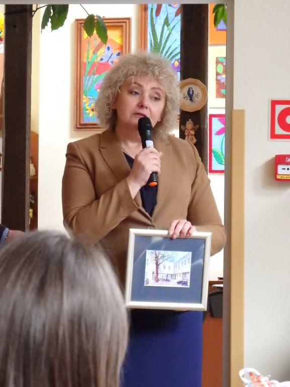 Na zakończenie programu artystycznego Przewodniczący Rady Mieszkańców Marian Kojder wręczył Pani Wicemarszałek Senatu RP obraz namalowany przez naszego pensjonariusza Wiesława Matyaszka, a dla wszystkich gości ręcznie wykonane serca przez mieszkańców na zajęciach terapii zajęciowej. Pani Maria Koc Wicemarszałek Senatu RP wraz z Senatorem RP Grzegorzem Peczkis podarowali nam obraz i książkę Senat Rzeczpospolitej Polskiej Tradycja i Współczesność XV- XXI w.