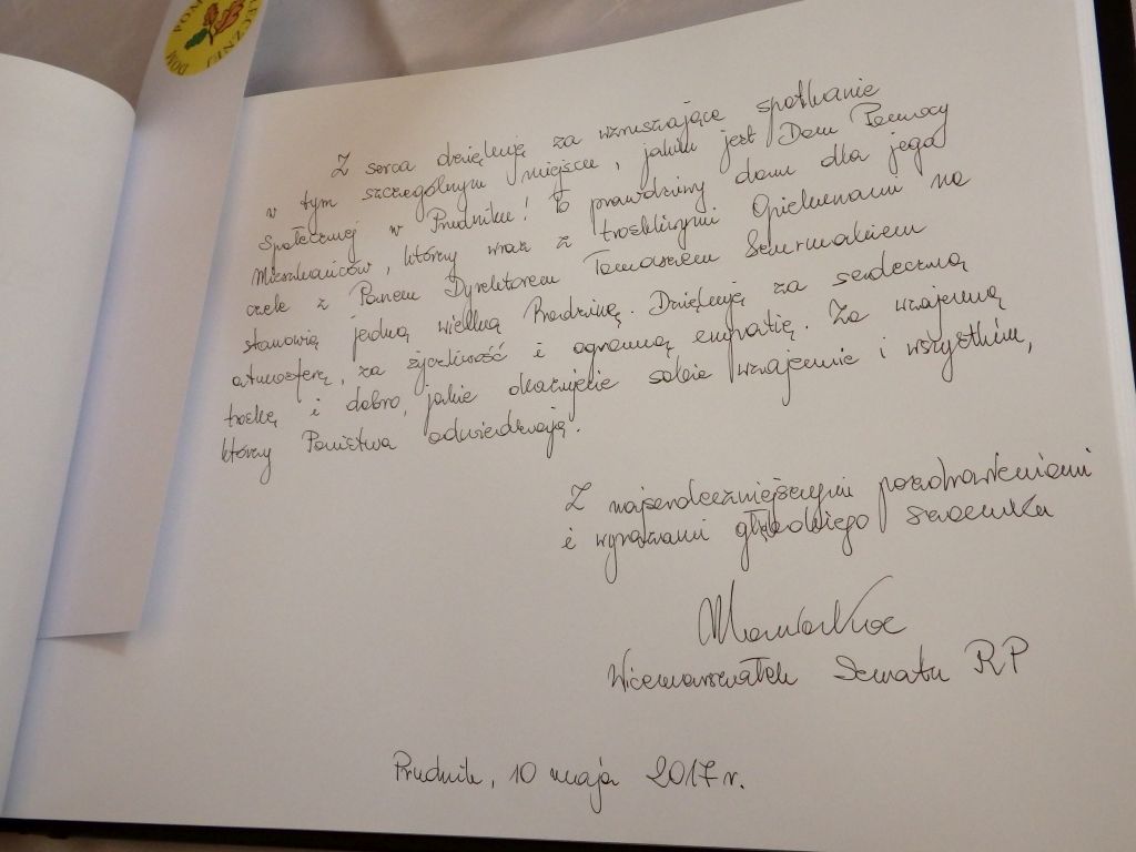 Na zaproszenie Dyrektora Domu Pomocy Społecznej w Prudniku Tomasza Szurmaka w dniu 10 maja 2017r gościliśmy Panią Marię Koc Wicemarszałka Senatu RP,