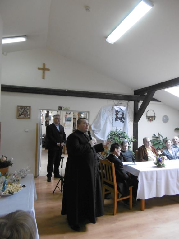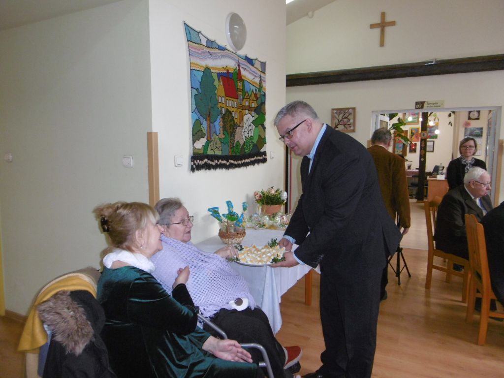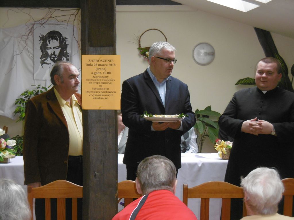 Dla mieszkańców naszego domu to okres refleksji nad życiem doczesnym, czas radości i świętowania. Okazją do podzielenia się tą radością i dobrym słowem było uroczyste spotkanie wielkanocne i Inscenizacja Wielkanocna w wykonaniu Naszych Mieszkańców. Na wstępie spotkania Pan Dyrektor Tomasz Szurmak złożył życzenia świąteczne wszystkim przybyłym mieszkańcom i pracownikom. Swoją obecnością zaszczycił nas ksiądz Paweł Chyla, który w swoim krótkim słowie powiedział, że Wielki Tydzień to szczególny czas rozpamiętywania ostatnich dni Chrystusa, przygotowujący nas do Zmartwychwstania Pańskiego.