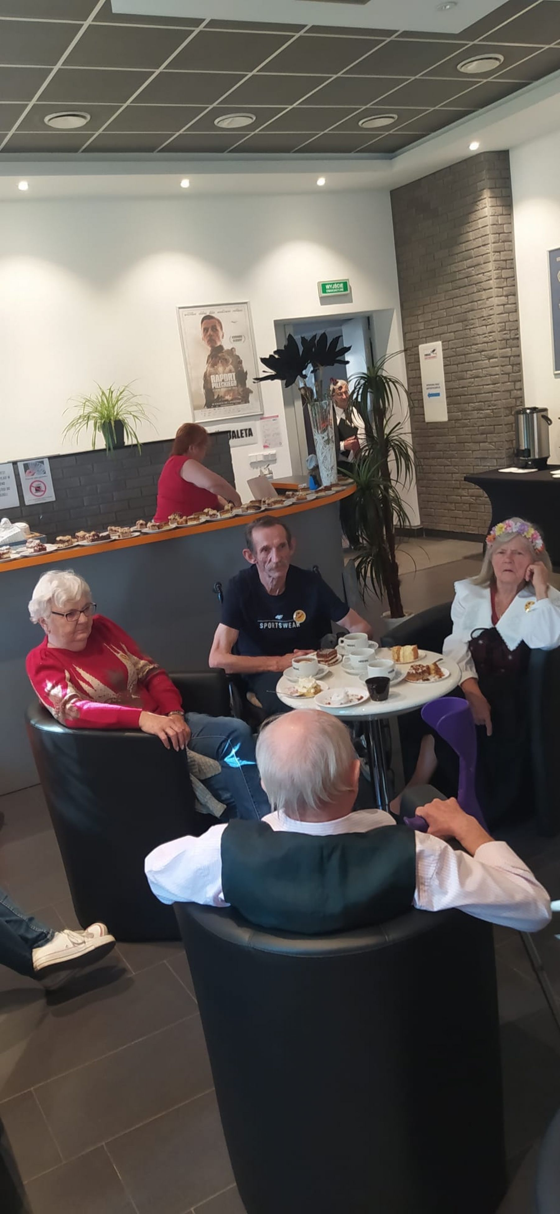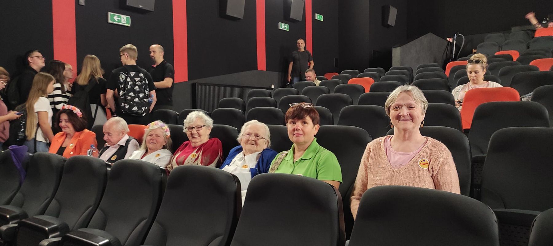 W dniu dzisiejszym wzięliśmy udział w Festiwalu Radości, czyli IV Prudnickim Przeglądzie Twórczości Artystycznej Osób z Niepełnosprawnością w kinie „Diana” w Prudniku. Nasi mieszkańcy Pani Janina i Pan Zbigniew pod okiem Pani Ireny zaprezentowali piosenkę "Hej Seniorze", która jest autorką tekstu i muzyki.