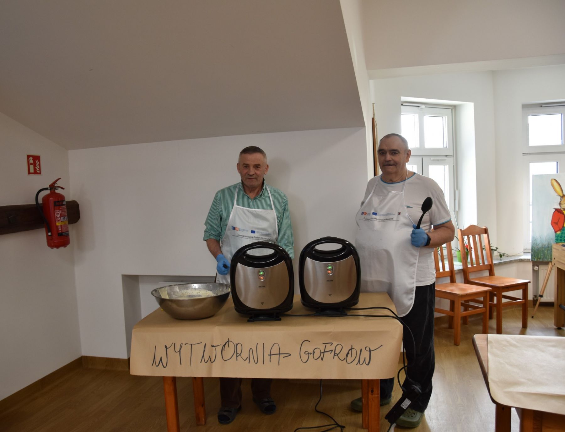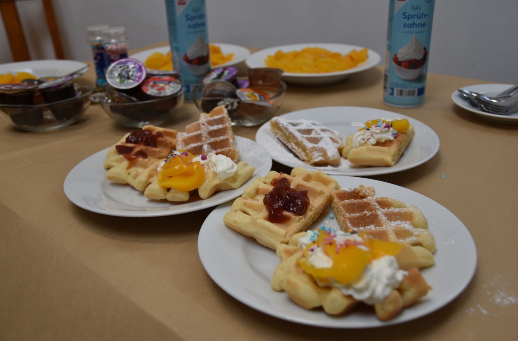 Dzisiaj na zajęciach piekliśmy gofry, w środku zimy zapachniało latem. Były pyszne z cukrem pudrem, bitą śmietaną i owocami, z dżemem. Gofry prawie takie same albo lepsze niż nad morzem.