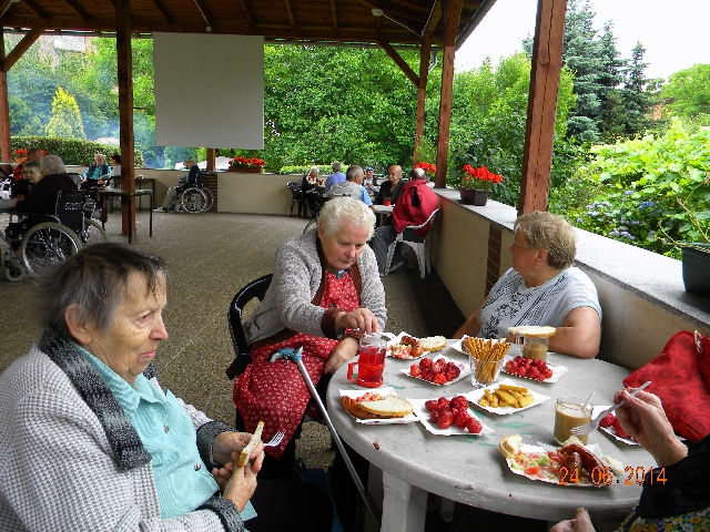 Wśród zebranych seniorów nie zabrakło solenizantów ?Janów?, którym z okazji imienin wszyscy zaśpiewaliśmy ?Sto lat?, a Pan Dyrektor wręczył upominki. Ognisko pozwoliło naszym seniorom spotkać się w wiacie ogrodowej, przy kawie, lodach, kiełbaskach i dobrej muzyce. Spotkanie miało też charakter wieczorku zapoznawczego, gdyż w ostatnim okresie przybyło nam nowych mieszkańców, którzy po raz pierwszy uczestniczyli w pieczeniu kiełbasek. Spotkanie przeciągnęło się do późnych godzin wieczornych, przy wspomnieniach z lat młodzieńczych, a uśmiechy na twarzach wszystkich seniorów tylko potwierdzały dobrą zabawę.Dodano: Niedziela, 29 Czerwiec 2014r. godz.:10:39.