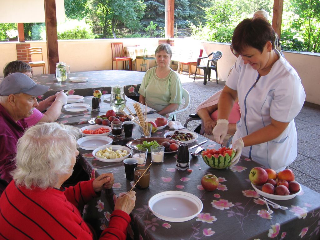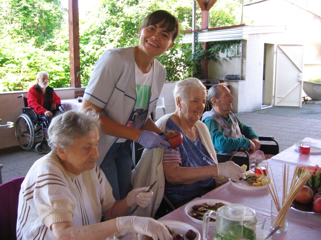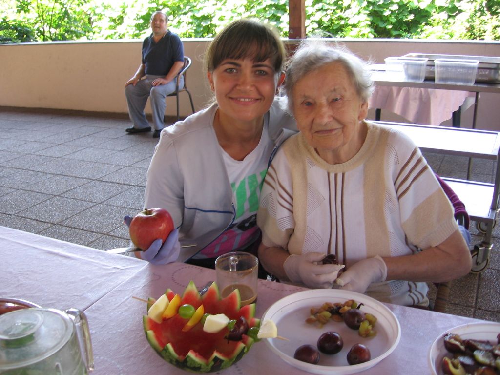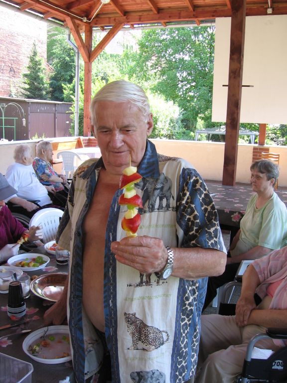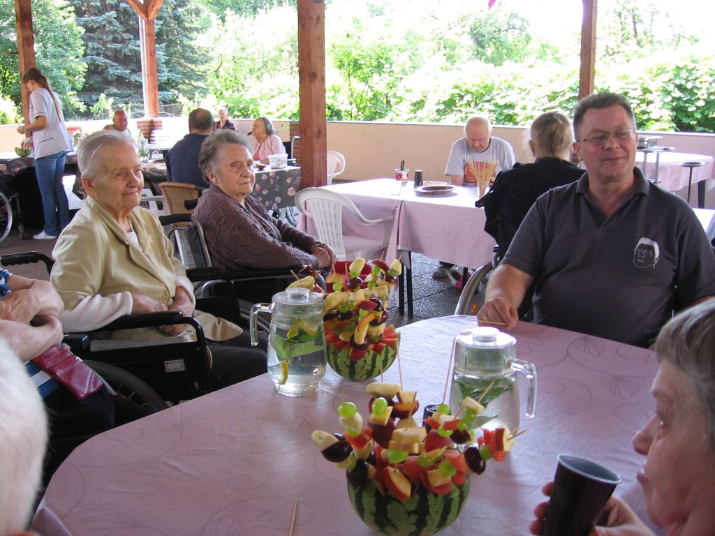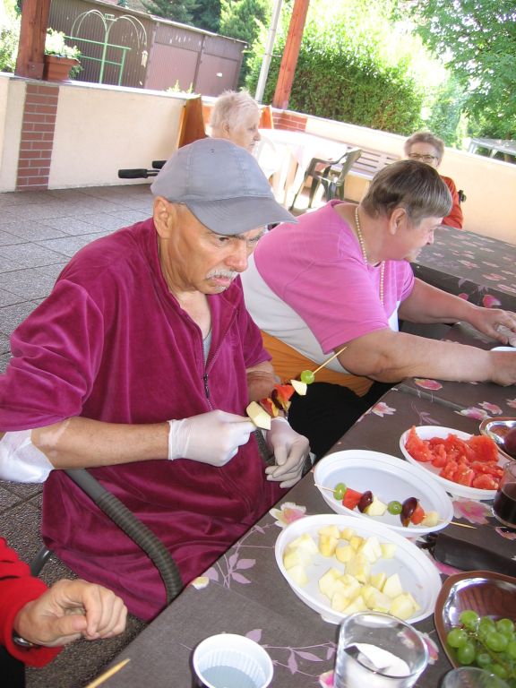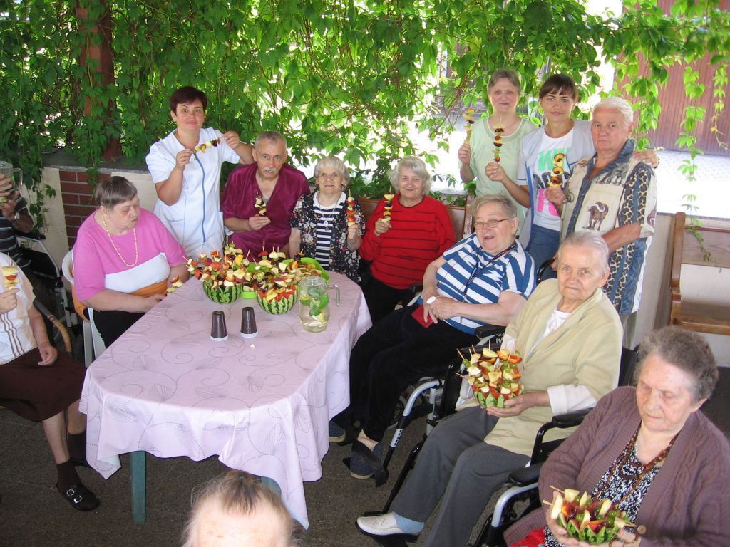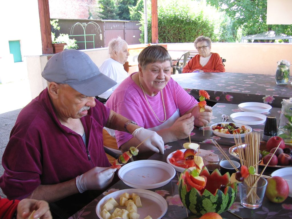 Dzisiaj we wiacie ogrodowej odbyły się ?Wielkie owocowe zawody w robieniu szaszłyków?. Rywalizowały między sobą dwie drużyny mieszkańców pod przewodnictwem Małgosi i Agaty.