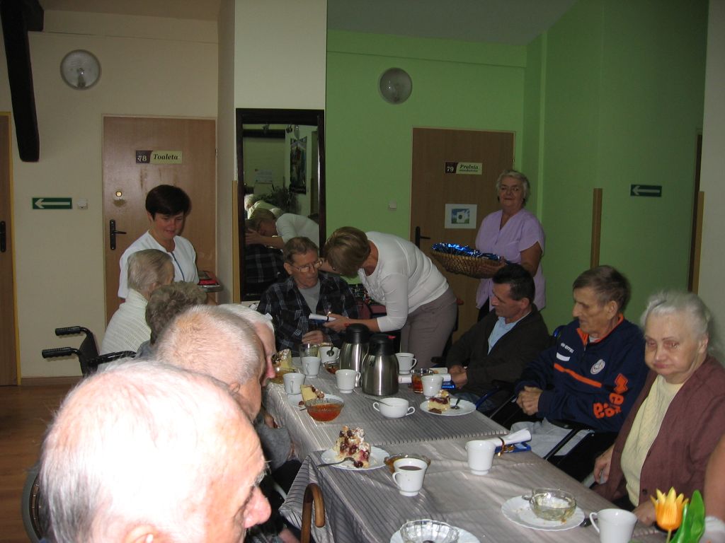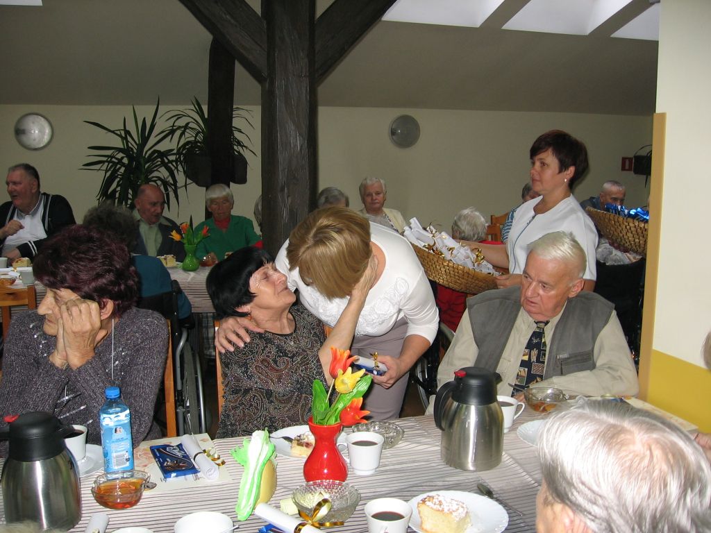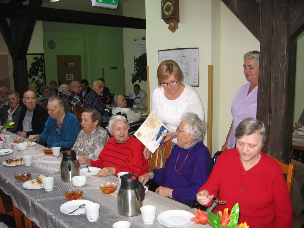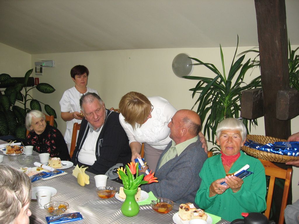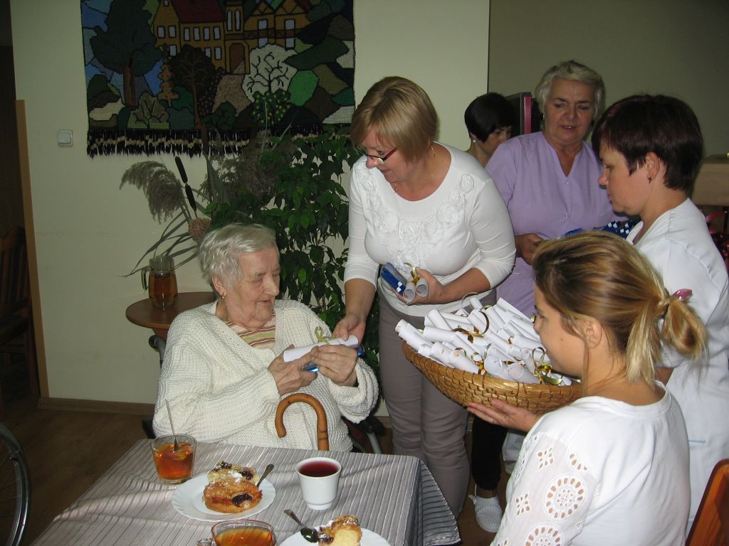 Licznie przybyłym mieszkańcom życzenia wszelkiej pomyślności oraz zdrowia w imieniu całego personelu DPS złożyła Pani dyrektor Iwona Zabłotna., wręczyła wszystkim mieszkańcom okolicznościowe dyplomy i słodki upominek.
