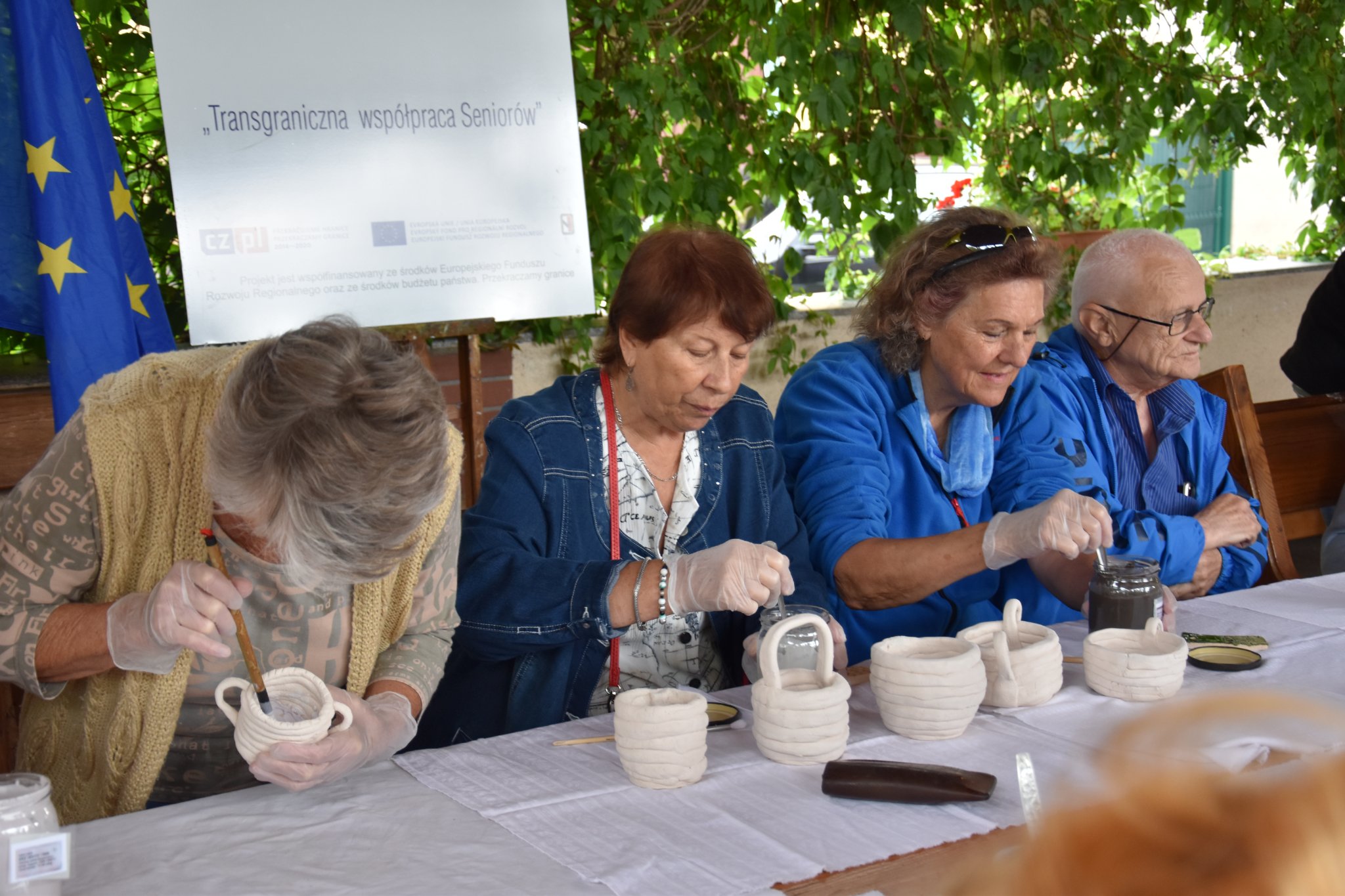 W dniach 26.07, 18.08, 31.08 2022 r. odbył się cykl warsztatów ceramicznych w ramach unijnego projektu „Transgraniczna współpraca Seniorów”. Wraz z mieszkańcami Sociální služba Šternberk i naszymi przyjaciółmi mieszkańcami Centrum Sociálních Služeb Jeseník oddaliśmy się pracy twórczej z gliną i jej obróbką. Lepiliśmy talerze, miski, kubki, ptaszki. Robiliśmy odlewy gipsowe - aniołki oraz uczyliśmy się pracy na kole garncarskim.