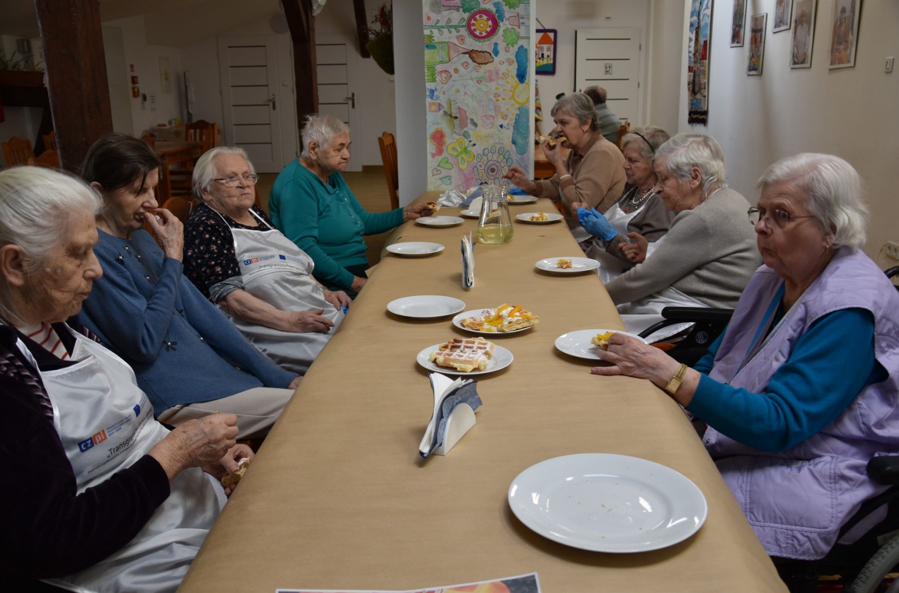 Dzisiaj na zajęciach piekliśmy gofry, w środku zimy zapachniało latem. Były pyszne z cukrem pudrem, bitą śmietaną i owocami, z dżemem. Gofry prawie takie same albo lepsze niż nad morzem.