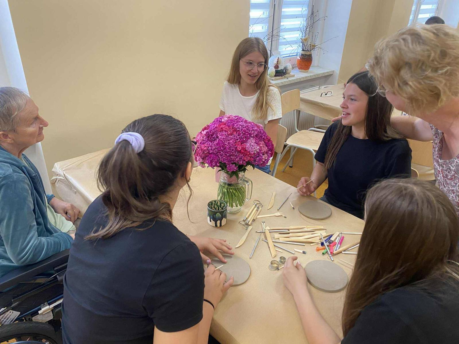 Środowe przedpołudnie spędziliśmy z dziećmi z Publicznej Szkoły Podstawowej im. Jarosława Iwaszkiewicza w Białej. Pokazaliśmy im nasz DOM i zaczęliśmy wspólne warsztaty międzypokoleniowe. Podczas zajęć manualnych wszyscy uczestnicy wykonali obrazki na glinie. Wspaniale spędzony czas na integracji i wymianie doświadczeń - na pewno jeszcze się spotkamy. Życzymy wspaniałych radosnych WAKACJI.